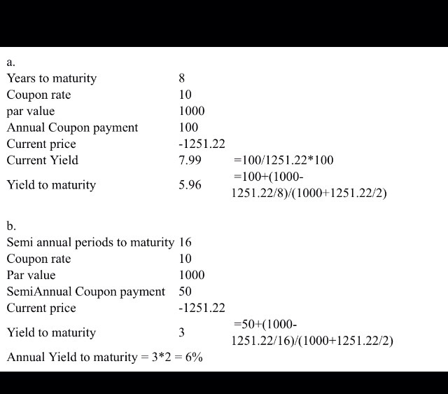 Each deposit/installment would be considered as a separate deposit and recurring deposit interest formula: A = p+i a = p+prt a = p(1+rt) wherein: Enter the principal investment, rate of interest, and time of investment into the calculator. For the maturity i think the formula is wrong and it gives wrong answer. The yield to maturity formula looks at the effective yield of a bond based on compounding as example of yield to maturity formula. In this case, we need to be sure that the annual rate of interest is adjusted for the fact that the note is shorter than a full year. Yield to maturity (ytm) is the total return anticipated on a bond if the bond is held until it matures. You can calculate maturity value for bonds, notes and some bank products such as. The following formula can be used to calculate the maturity value of an investment. For example the maturity value of $700 at an interest rate of 1.5% p.m. Estimated yield to maturity formula. Face value is a bond's maturity value, or, in other words, the amount of money paid to the holder at examples of yield to maturity formula. Below is the formula for calculating a bond's price, which uses the basic.